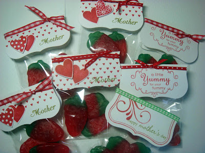 I do have a little something to share with you all for today. I made a load of little Easter and Mother’s day treats a few weeks ago for our school fundraising day and haven’t shown you any of them. These are just some little treats using a mixture of PTI and Stampin Up stamps. LOVE those Haribo strawbs!!