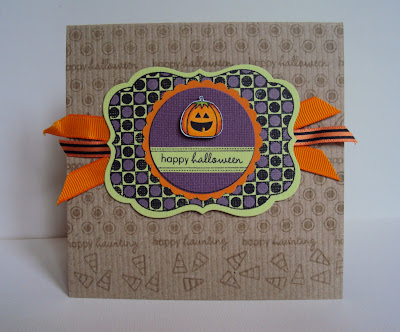 This is a great card! That little pumpkin is just too cute! Love the colors and the patterns in both the papers and the stamping.