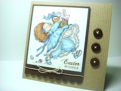 AT LAST!!  We had a crisis with our network yesterday – couldn’t retrieve anything off my computer and had no way of uploading my card for this weeks challenge at Mo’s!!  It is all resolved now though so I can finally share it!  Our gorgeous and talented new hostess for the month of March is our Cathy and this week she has asked us for a card using brown, blue and one neutral.  Great colour combo this.  I have used one of Mo’s latest images, Sydney on Easter and she is coloured with promarkers.  The easter sentiment is from Mega Mixed Messages by Papertrey Ink.  We are also blessed to have our first GDT at Mo’s too – Linda – so please pop along and visit her fabulous blog.