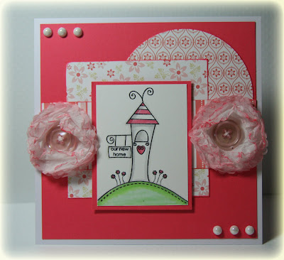 Love the whimsical feel of the whole card from the lil’ house and the tissue flower and the fun layout.