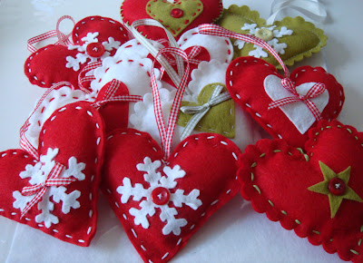 Good frosty morning all – brr, it’s a chilly one!  I have been a tad quiet on the blog of late as ALL my spare time has been devoted to making goodies for the school Christmas fair which was yesterday.  Over the past few weeks I have fallen in love with making these felt hanging heart decorations so made a bundle of them to sell at the fair.  They went down really well and I even came home with orders!!  I sold them for £2.50 each which I thought was pretty good.  They are so easy to make too if you have a Bigshot and some nesties!