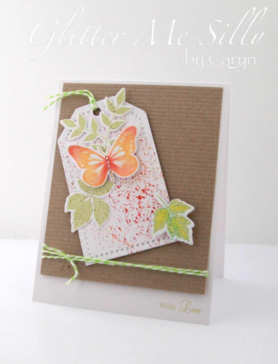 The jury’s out on this one for me. I’m not really a splatterer (?) but whilst I was trying out my new Inktense pencils I had a wee accident which resulted in my tag getting splattered!! I love that you can do that with them but it wasn’t exactly where I was headed, lol!! Anyhoo, I thought I’d just go with it but now that I look at it again I can’t help wondering if it looks like the butterfly has suffered some sort of haemorrhage!!! Oh well, you win some you lose some, lol!
