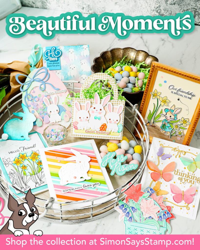 Hello! I’m so thrilled to be sharing some cards I created using the fabulous products available in the Simon Says Stamp Beautiful Moments Release. I was so inspired when I received the package of goodies and created 5 springtime cards using a variety of techniques.