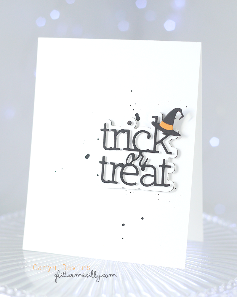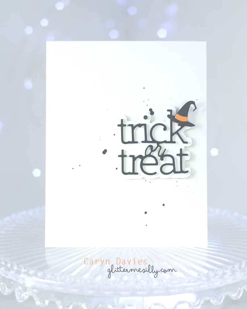 I do love a good clean and simple style so I was excited to pull out some Halloween goodies for this week’s challenge! (never too early I say. I die cut the CZ Design Trick or Treat 2 wafer Dies multiple times to create a bulky die cut embellishment. I used the with hat die from the Simon Says Stamp Costume Ghost Parade set and added it to the sentiment.
