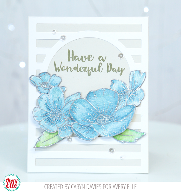 Hey, I’m over on the Avery Elle Blog sharing a card using the very pretty and versatile Hand Drawn Florals stamp set. I love the whimsical feel of the flowers and they are so fun to colour. Today I’ve used the Sapphire and Mint to Be liquid watercolours mixed with some subtle shimmer and a few Nuvo drops here and there for added bling.