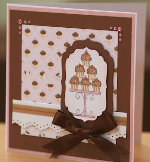 I have used my Stampin Up! “Crazy for Cupcakes” set which I LOVE. I have coloured the image with my Promarkers (cinnamon, rose, satin, apricot, poppy) and pp is from the Sweet Stack by DCWV. I have glamour dusted the image too (hard to see) and so I am entering this card in this weeks Secret Crafter challenge -which is my favourite thing of all GLITTER!!