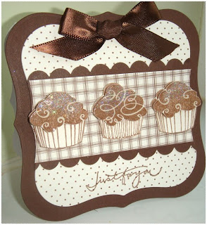 Yes, as the name suggests we are asking for die-cuts on your cards this week over at A Spoonful of Sugar. I have made my card using my nesties and SU! scallop punch (which I lurve)! Again I have used my little cupcake stamps from Sandy and this time have diamond glazed and glittered them. The ribbon, papers and card are all Papertray Ink from my chum Steph and the sentiment is Woodware. After I made this card I saw that the current challenge over at A Passion for Papertray is to use scallops – happy days, 2 challenges in one card!!!